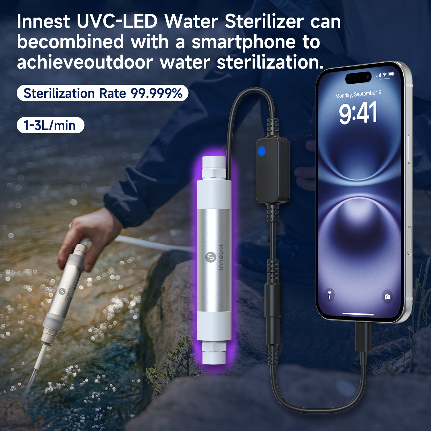 我们非常高兴地宣布,Innest公司研发出了一项突破性的创新技术!我们的UVC-LED水杀菌器现在可以通过手机进行供电,从而实现高效的户外水杀菌。这一创新不仅是一个概念,它已经经过了严格验证,证明了其可行性,这无疑是一个重大的技术突破。